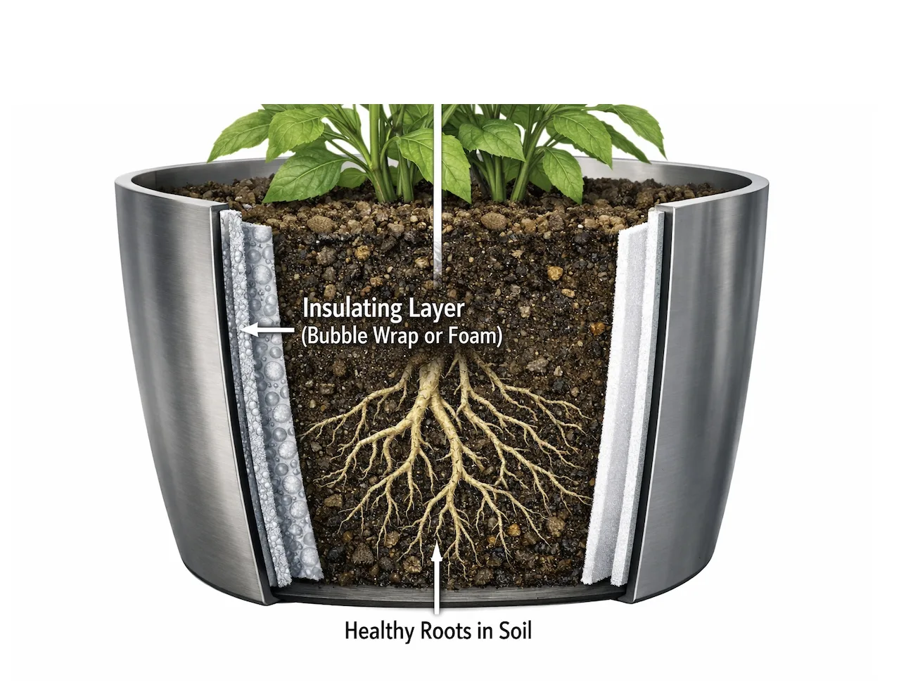 •Insulation is Key: To protect roots from extreme temperatures, line the inside of your metal container with insulating materials. Options include bubble wrap, landscape fabric, or thin sheets of foam. This creates a buffer against both heat and cold .