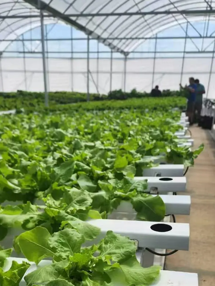 The first greenhouse is equipped with a Nutrient Film Technique (NFT) system, utilizing our black and white hydroponic pipes. This setup is designed to grow leafy vegetables, with an impressive capacity of producing 20,000 plants per month. The black and white pipes are ideal for this crop, ensuring proper root development and nutrient absorption. The NFT system maximizes space while ensuring efficient water and nutrient distribution to the plants, leading to high-quality yields.
