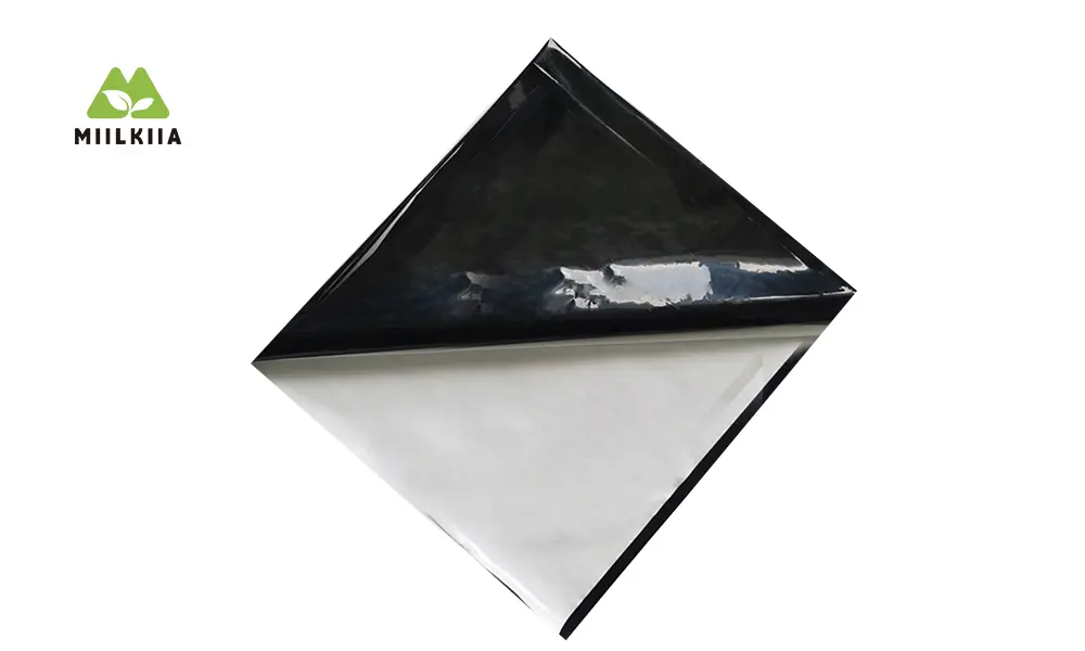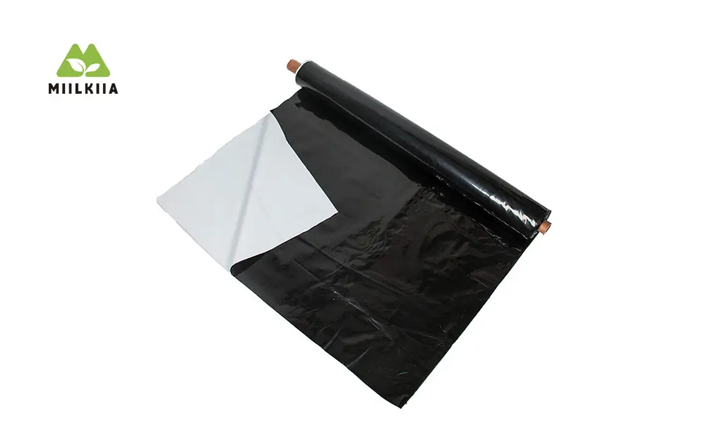 Miilkiia Black and White Greenhouse Film is specially designed to optimize climate control inside greenhouses. The white side reflects light to maintain stable temperatures, while the black side blocks UV rays and suppresses weed growth. This dual-function film is widely used in commercial agriculture, especially in environments that demand strict temperature regulation and light control.