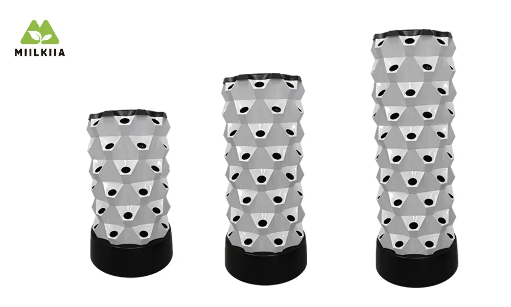 A4: Each tower can support up to 48 plants in a 6-layer setup, 64 plants in an 8-layer setup, or 80 plants in a 10-layer setup. Each layer has 8 planting holes, making it a highly space-efficient growing system.