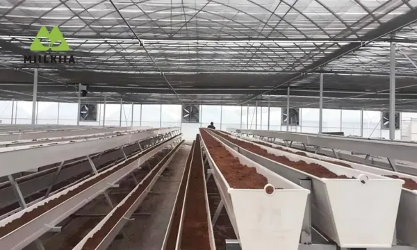 The integration of drip irrigation with the substrate gutter system allows growers to create a highly efficient, water-saving cultivation environment, which is particularly beneficial in regions where water is a limited resource or for operations aiming to reduce water consumption.
