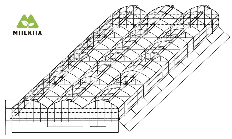 This greenhouse is designed for commercial-scale vegetable and flower production. Widely used in varied climates including tropical, arid, and temperate zones.